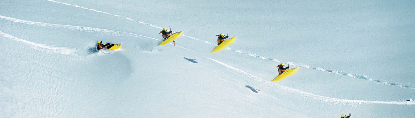 Have you ever seen kajaks on a ski run? Did you really? Well, we think that you haven't seen something like Snow Kajak before. It's new and radical and absolutely incredible: Freeride Kajaking!